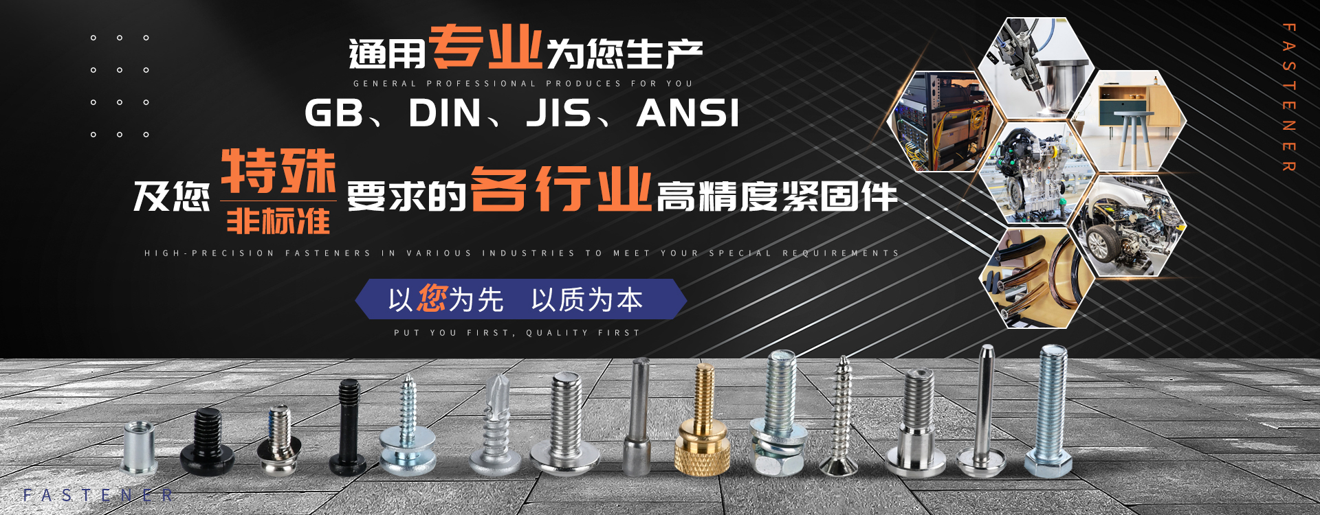 中山市通用螺絲制造有限公司成立于1987年,工廠坐落于廣東四小虎之一的中山市,北連廣州,毗鄰港澳??傉嫉孛娣e14000m 2,足有兩個足球場。1998年通過德國萊茵TUV ISO9002認證,于2002年通過TUV ISO9001:2000認證。2008年通過ISO 14000認證。我司主營自攻螺絲組合螺絲、機械螺絲、防松螺絲等標準和非標準件既可按客戶的要求提交所需的產品,也可為客戶量身定做所需產品。我司擁有專業的產品檢測隊伍和投影分析儀、金相、硬度計(韋氏和洛氏)、扭矩力測試計等完善的檢測設備,為電子、電器、五金塑料、衛浴、家具、機械、汽配等行業提供符合歐盟質量、環保要求的產品。2006年,我司自主開發的ERP管理系統,使我們的生產和服務效率得到了極大的提高 經過三十多年地摸爬滾打,依靠眾多新老顧客的支持,通用螺絲逐漸成長為國內知名的緊固件供應商。了解更多 >>